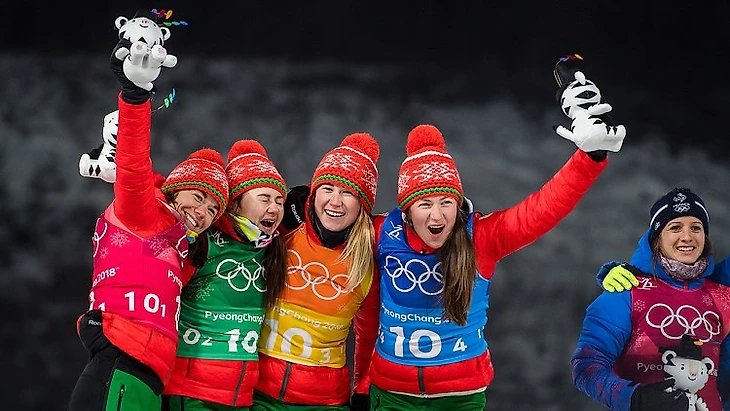 Сенсационно женскую эстафету на Олимпиаде выиграла сборная Белоруссии, вторые — шведки, а третье место у француженок.