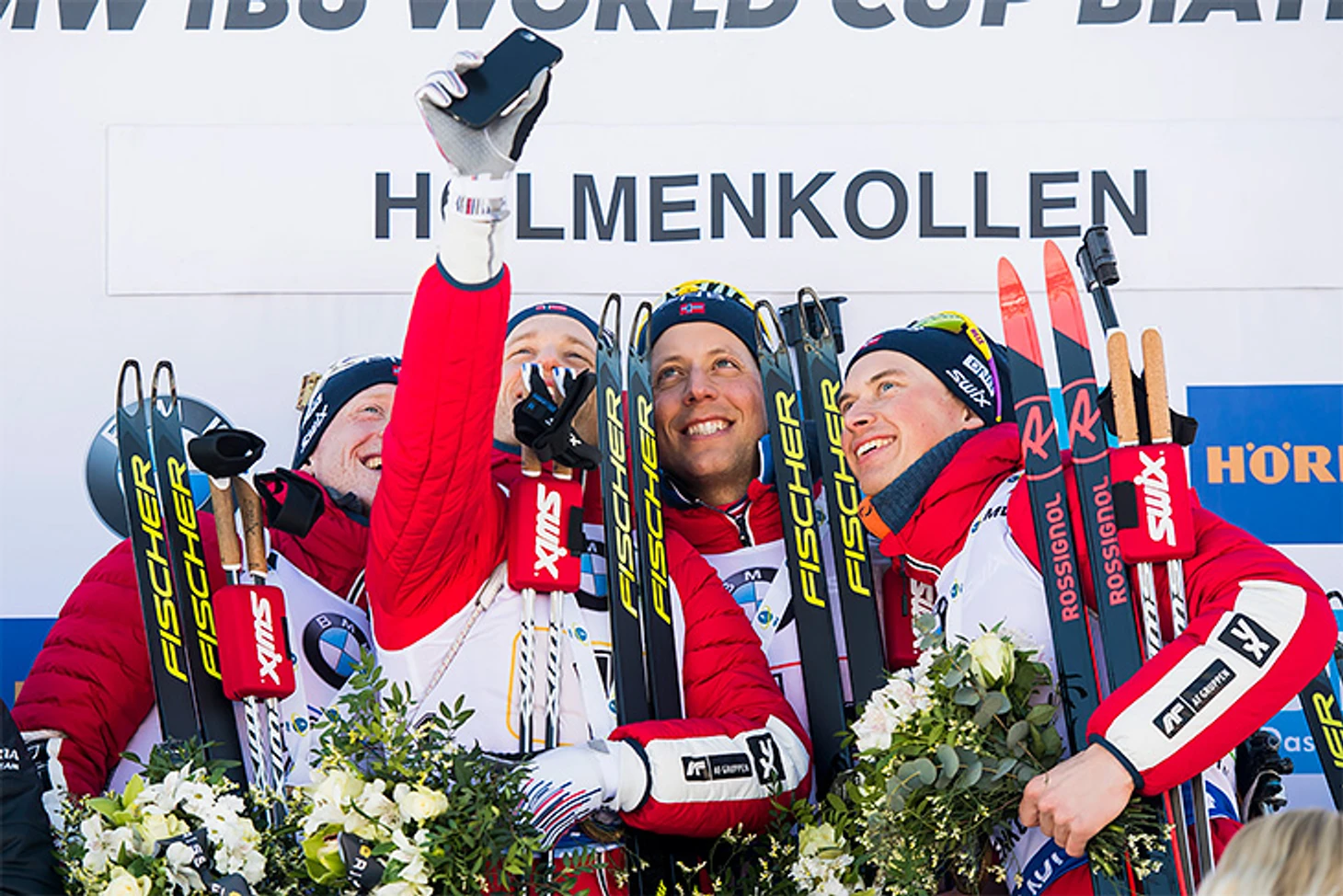 Норвегия выиграла эстафету на домашнем этапе Кубка мира в Холменколлене. Россия – 3-я, проиграв на финише Австрии.
