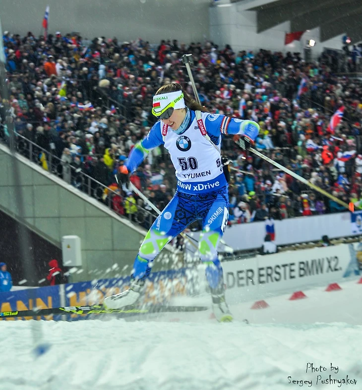 А вот у Надежды Скардино стрельба в спринте не задалась. Признанный снайпер ошиблась два раза на стойке и заняла в итоге только 47 место. Но вскоре после гонки счастливая улыбка Надюши озарила ярким светом тысячи зрителей на "Жемчужине Сибири" и по то сторону телеэкранов. Малый хрустальный глобус за победу в зачете индивидуальных гонок нашел свою хозяйку!
