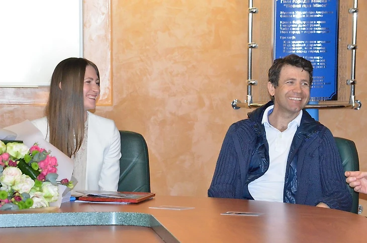 По уже сложившейся традиции Дарья весной ходит в гости к своим деловым партнерам - компании Белгосстрах. На этот раз ее сопровождал и супруг.