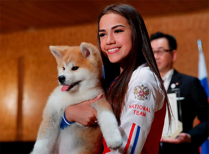 После победы в Пхенчхане Загитова призналась, что всю жизнь мечтала о собаке. Акита-ину ей понравилась еще на предолимпийском сборе в Ниигате.