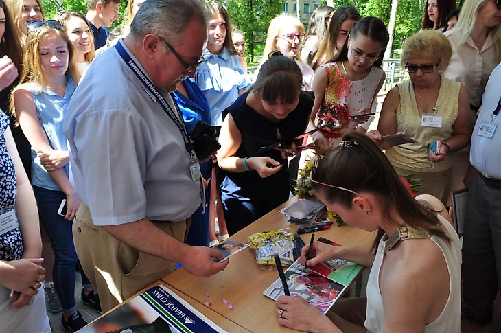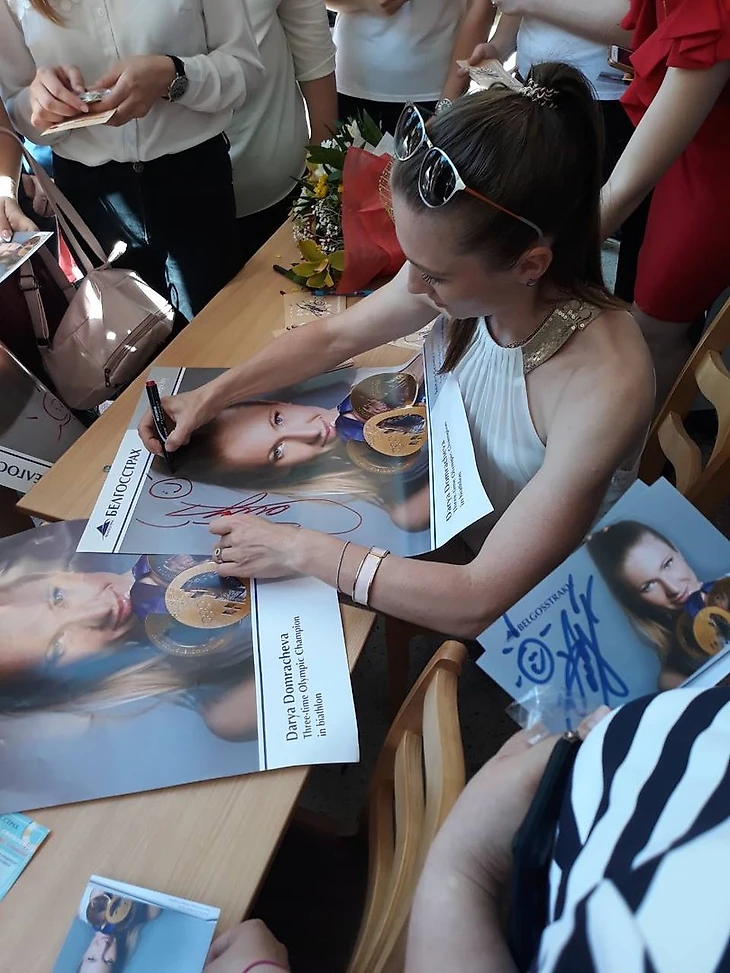 Как известно, Дарья Домрачева давний партнер компании Белгосстрах и практически каждый год с охотой приминаем участие в благотворительной акции "Белгосстрах - детям". Вот и 31 мая 2018 года четырехкратная олимпийская чемпионка вместе с представителями футбольного клуба "Динамо" Минск и топ-работниками страховой компании побывали в гостях у Минского государственного колледжа сферы обслуживания.