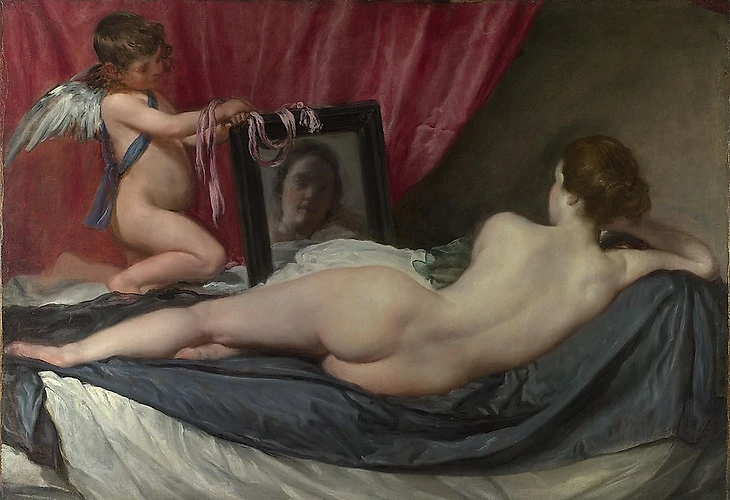 «Венера с зеркалом» — единственное сохранившееся изображение обнажённого женского тела кисти Веласкеса. В конце XVIII века висело во дворце герцогини Альбы подле вдохновлённой ею «Махи обнажённой». После смерти герцогини куплено Годоем, в 1813 г. перевезено в Йоркшир.