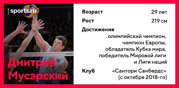 Так совпало, что именно в этом сезоне в сборную вернулся Дмитрий Мусэрский. Спустя два года. Последний раз мы его видели – эпизодами – в Мировой лиге-2016. Олимпийский отбор он пропустил по семейным обстоятельствам, саму Олимпиаду – из-за травмы коленей.