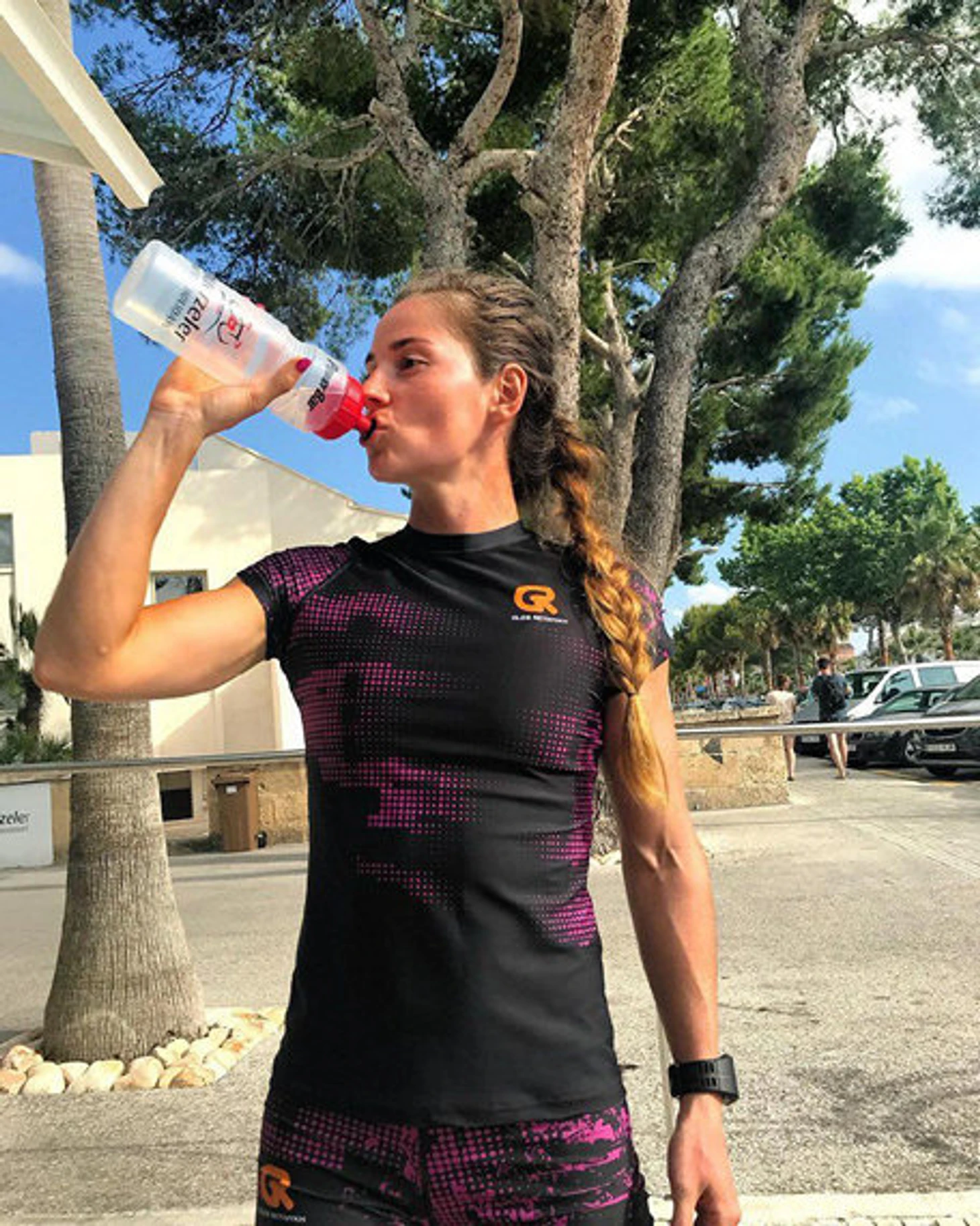 В основном 82% – полиэстер, 18% – эластан, это специальное сочетание, знаю по своему опыту. Взять рашгарды, которых я перепробовал много: часто, когда бежишь и потеешь, они начинают натирать. У нас такого нет – все сидит плотно по телу, забирает пот, быстро выветривает, плюс имеет свойство охлаждать в жару.
