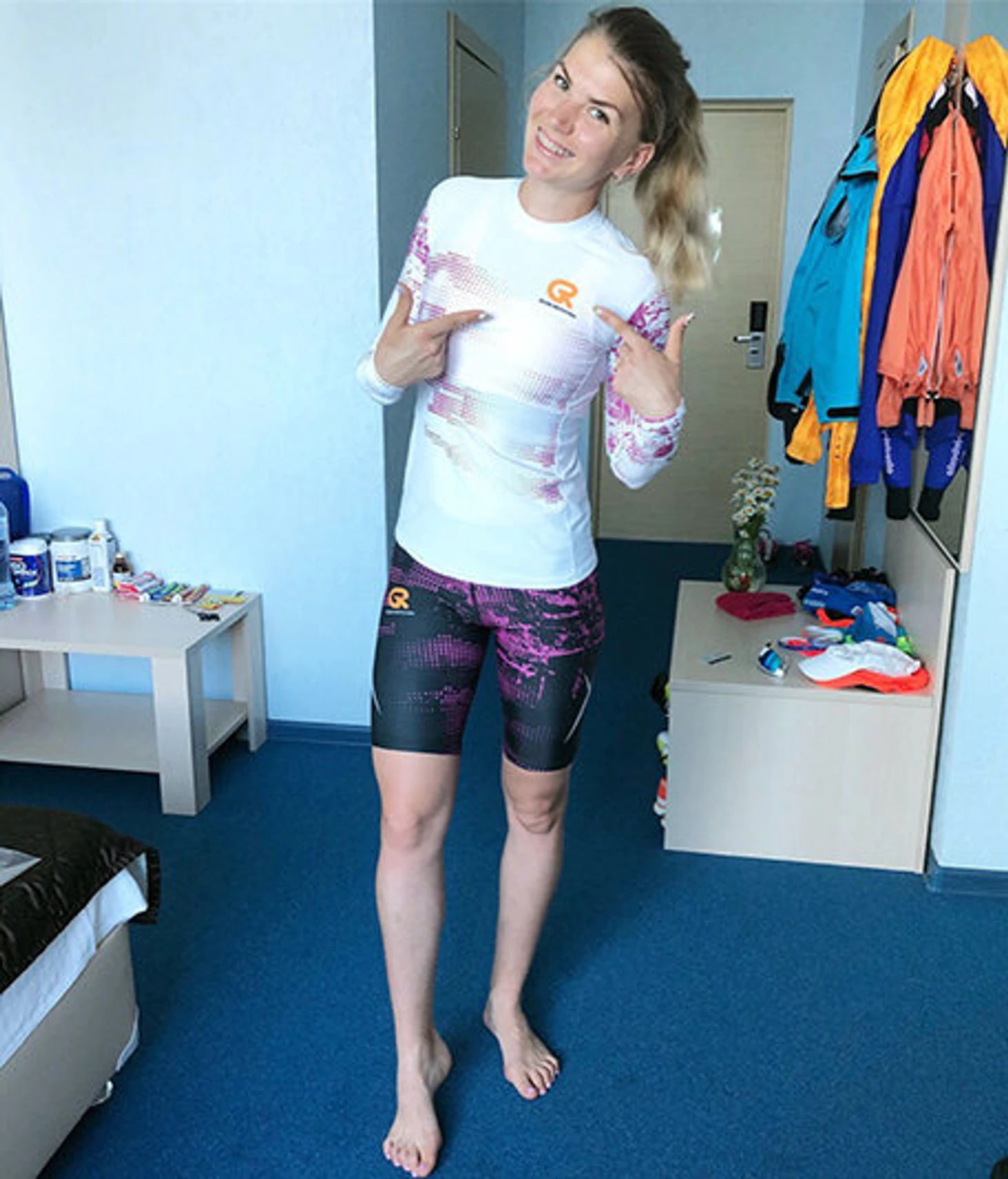 – Сначала – только я, это отняло месяц, не меньше. Как все было: выбрали ткань, сшили лосины и одну футболку с длинным рукавом, одну с коротким. Дома в апреле-мае я проверял: кросс, потом роллеры в дождь и в жару, потом тренажерный зал. Как только чувствовал неудобство, мы дорабатывали, меняя ткань или пошив – так пришли к тем моделям, которые я считаю оптимальными.