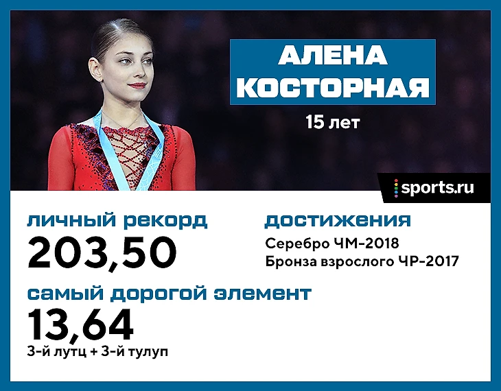 Против Косторной – неуверенность в себе. Ее второе выступление в сезоне смотрелось не столь убедительно – с бабочкой в короткой и с падением в произвольной. Но у Алены еще достаточно времени – до финала ЮГП она точно выступит на паре этапов Кубка России.