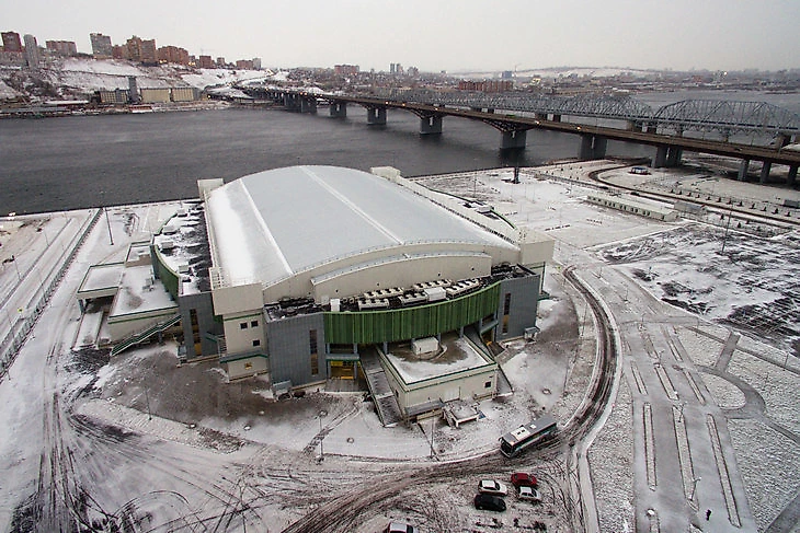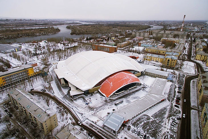 Крытый стадион «Енисей» для хоккея с мячом на пять тысяч мест тоже новый. Его особенность – в конструкции крыши использовались стометровые деревянные балки из клееного бруса весом 94 тонны каждая. Замдиректора строительной компании Алексей Кокорников поясняет, что они даже прочнее: гарантия – 100 лет. И более огнеупорные, чем металл – при пожаре дерево не теряет несущую способность два часа, а металл – час. Цена материалов при этом почти одинаковая.