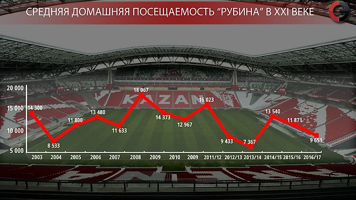С приходом Чемпионата Мира в России было открыто множество новых современных арен для комфортного просмотра футбольных матчей, что, конечно же, повлияло на посещаемость в лучшую сторону. Средняя посещаемость матчей РПЛ после 17 матчей сезона 18/19 – 16.987. Средняя посещаемость ТОП 8 команд РПЛ – 21.437.
