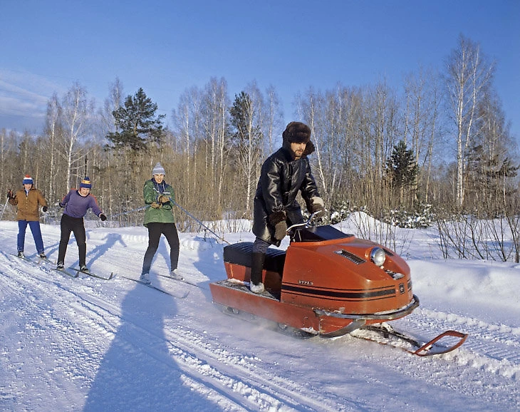 На лыжах – за снегоходом «Буран». То еще развлечение!