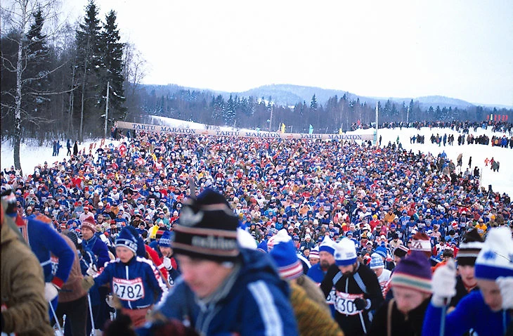 Толпа! Участники лыжного марафона на «Празднике Севера-84».