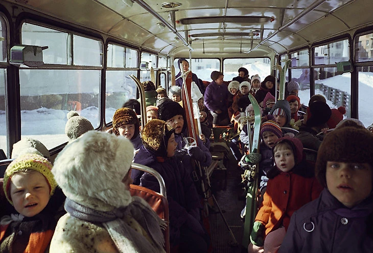 Воспитанники норильского детского сада едут на лыжную прогулку в тундру. Интересно, это пазик?