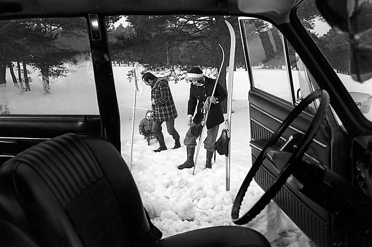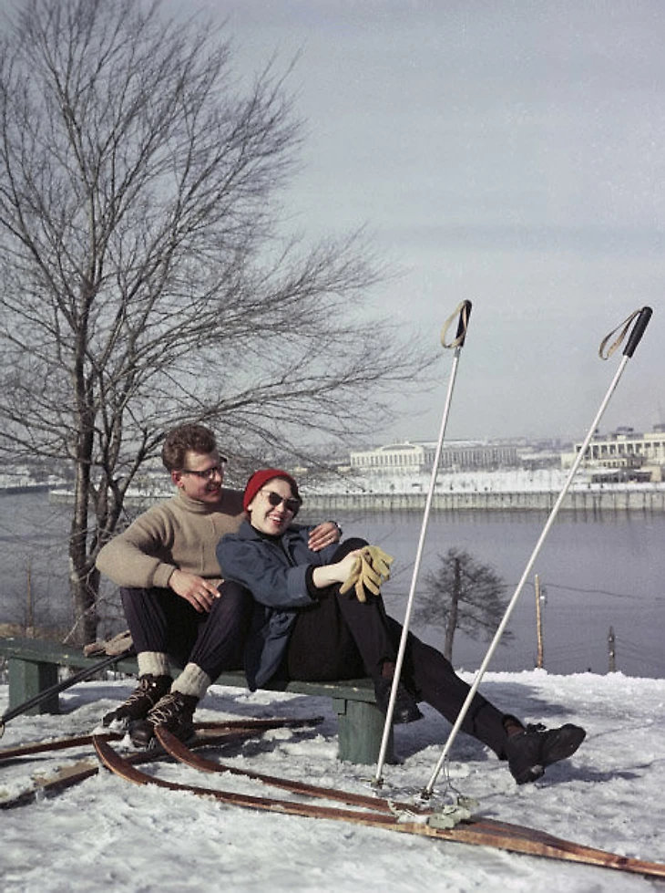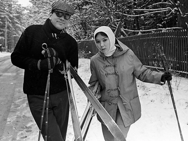 Начало 60-х: знаменитая балерина, солистка Большого театра Майя Плисецкая (1925-2015) и ее муж, композитор Родион Щедрин с лыжами в подмосковном лесу. Они еще в самом расцвете сил: до отъезда в Германию на ПМЖ впереди 30 лет.
