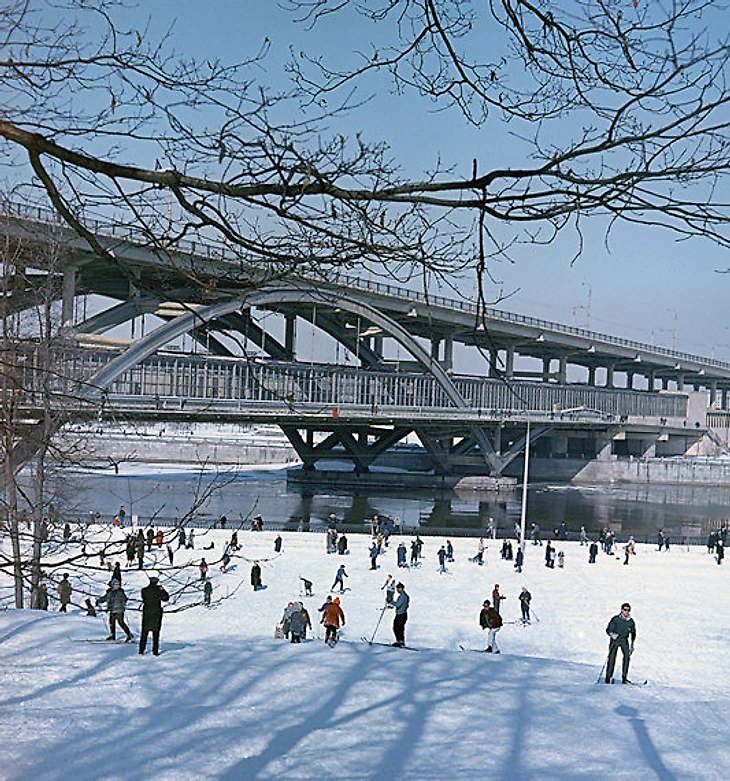 Столица задавала моду: москвичи использовали любую свободную площадку. Например, у Лужнецкого двухъярусного метромоста, который открыли в 1959-м вместе со станцией метро «Ленинские горы» (да-да, так раньше назывались Воробьевы). К слову, самая длинная в московском метрополитене (272 метра).
