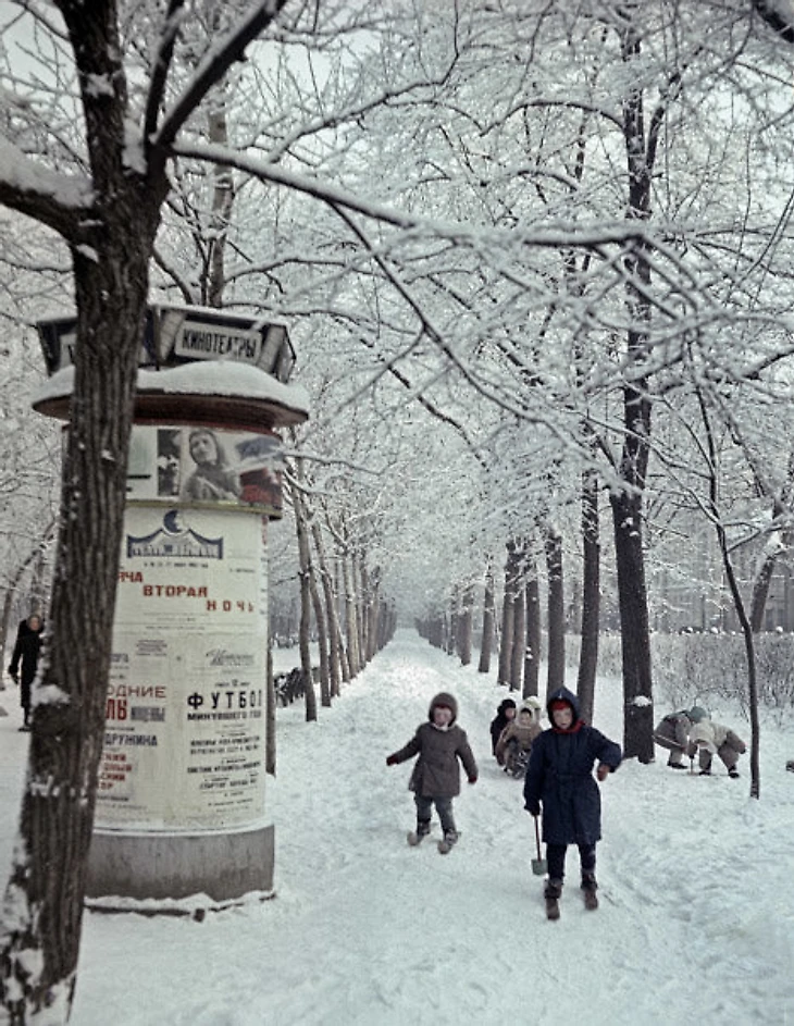 Заснеженный Петровский бульвар – от одноименных ворот до Трубной площади: дети резвятся и учатся правильным движениям на лыжах. Сейчас в это сложно поверить: но в центре Москвы было где покататься!