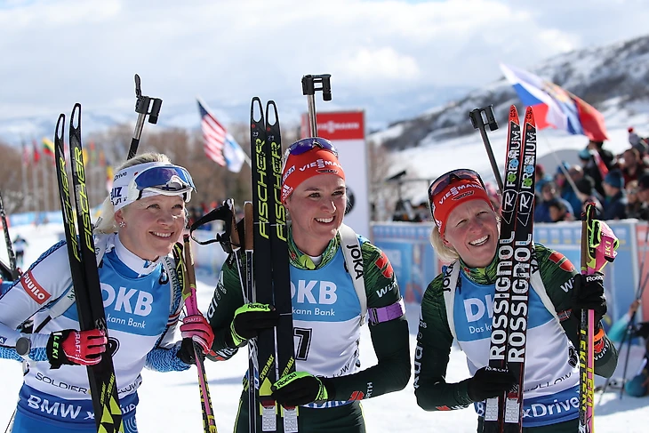 Урожайным выдался этап и для сборной Германии: помимо сенсационной бронзы Рееса — серебро и бронза Франциски Хильдебранд, победа её коллеги Дениз Херманн в пасьюте и серебряная командная медаль в смешанной эстафете. А ещё в женской гонке преследования произошло одно знаменательное событие, которое мы уже несколько раз готовились увидеть на предыдущих этапах — Лиза Виттоцци сбросила с первой строчки общего зачёта старшую подругу по сборной Доротею Вирер, и теперь именно молодая итальянка выйдет на первый личный старт грядущего чемпионата мира в яркой жёлтой майке. Чьим же всё-таки будет Глобус в конце сезона? Мои симпатии скорее на стороне тёмной лошадки Виттоцци, чья победа будет гораздо более сенсационной и неожиданной, но, объективно говоря, Вирер всё же имеет весомое преимущество в опыте и закалке. Лиза уже пару раз допускала ошибки в самый ответственный момент, как на последнем рубеже гонки преследования в Солджер Холлоу, когда лишила себя возможности бороться за подиум, а в борьбе за Большой Хрустальный Глобус стальные нервы ещё ох как понадобятся, и не один раз.
