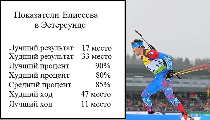 Елисеев тоже участвовал в шведских стартах лишь дважды. Оба раза стабильно. Первый раз – 16 и 17 место (ход в двадцатке), второй – 32 и 33 (47 и 43 ход). Оба раза стрельба 90 и 80 процентов. В этом сезоне Матвей не прибавил в точности (до сих пор около 80 процентов), зато ощутимо прибавил в скорости – лучшие скорости в карьере. Это уже помогло ему добраться до первого личного подиума на Евро, возможно, стабилизировав стрельбу, удастся побороться и за медали ЧМ.