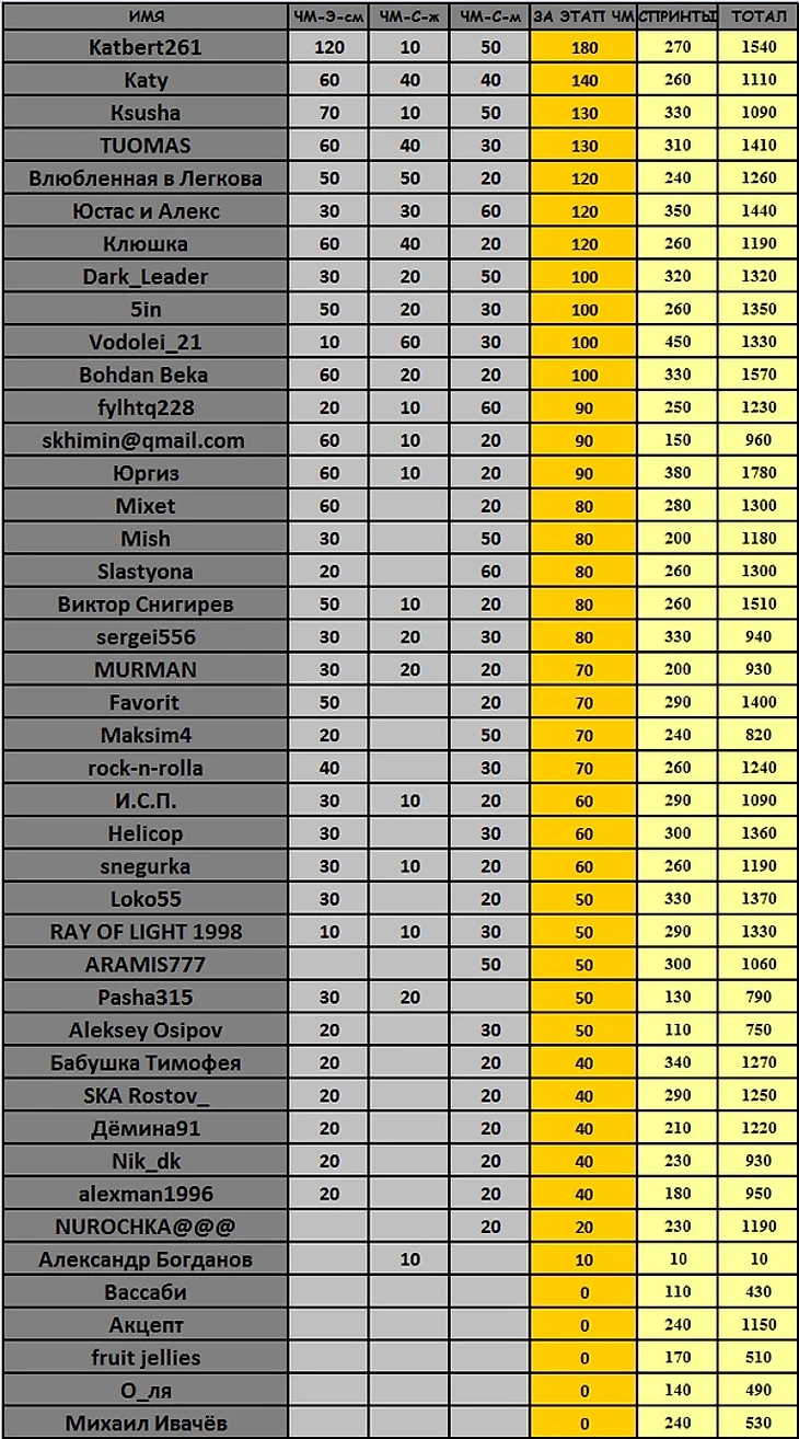 Таблица после трех гонок. В ней продолжает лидировать Katbert261.