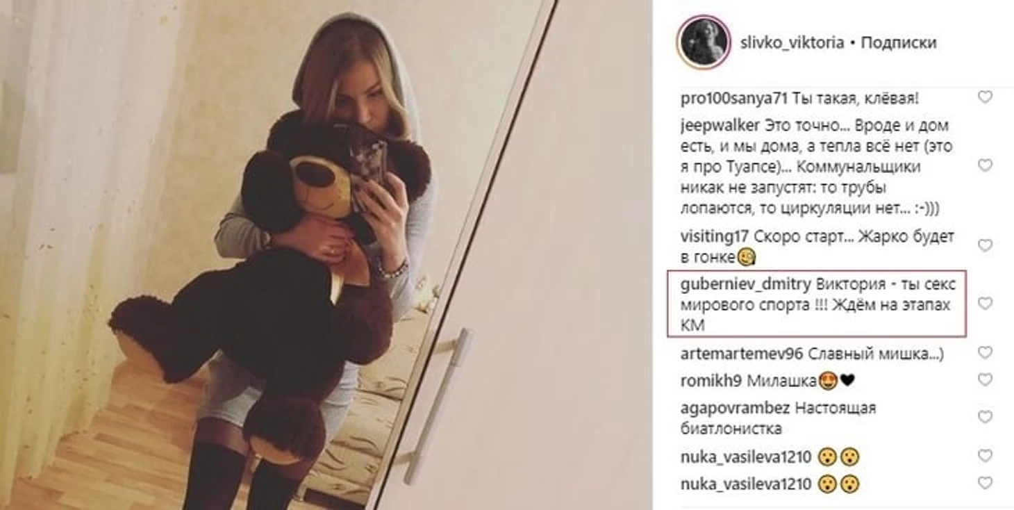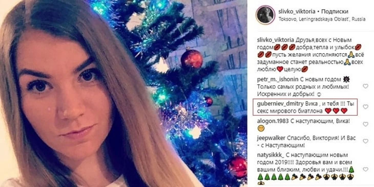 • Губерниев в инстаграме комментировал почти каждое мое фото: Вика, ты секс мирового биатлона, волшебство красоты и секса. Секс, секс, секс. Понятия не имею, что его подвигло на такие слова. И я ему написала лично – по-хорошему, по-доброму: Дмитрий, можно не комментировать в таком роде? Я не хочу его обидеть – тем более он при первой же возможности скажет, что думает обо мне.