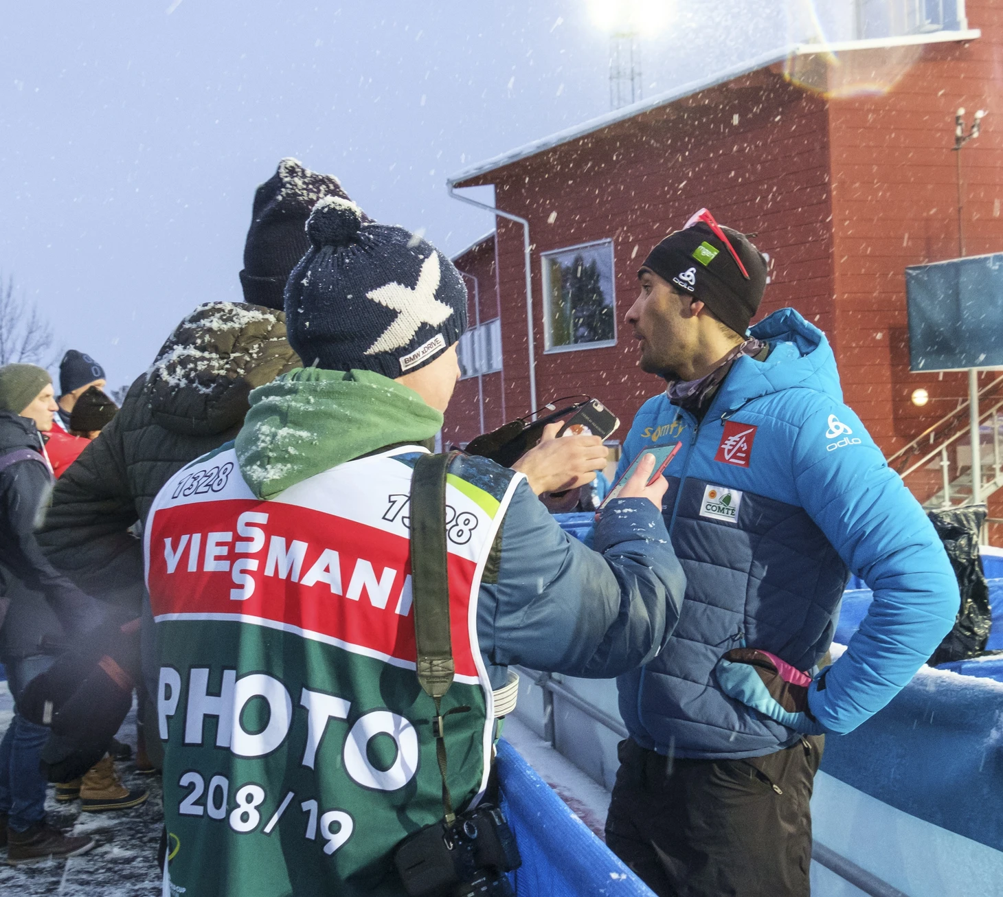 Пришлось задавить робость, унять дрожь и пристать к нему в микст зоне: "Martin, sign please some photos!" "Only one!" - говорит (он видимо привык, что я приношу сразу пачку). Там было три фотографии, подписал три. Как раз тогда Костя Клименко из Украины спросил у него комментарий, он ровным, абсолютно механическим голосом сказал что-то вроде "Я был неправ, я плохо выступил"; я увидела, что небо не падает на землю, если у Мартена что-то спросить, и когда он уже уходил, спрашиваю: "Ты будешь в масс-старте?" "Буду!"- отвечает, и ушел.