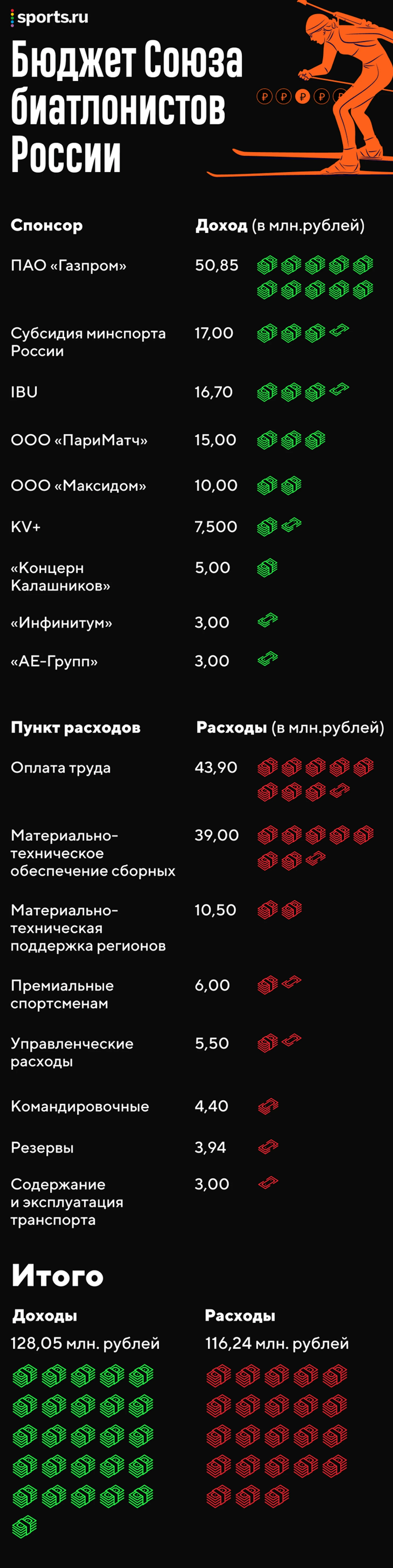 Призовые спортсменов не имеют к СБР никакого отношения, они даже не заходят на наши счета – идут напрямую спортсменам. А мы получаем деньги от IBU за место команды по итогам сезона – в бюджете это есть, под 17 млн рублей.
