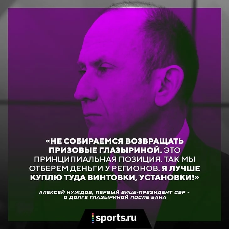 – Если обратится к Алексею Нуждову – может, и помогу. Если обратится в СБР, то надо спрашивать согласие у регионов. Это не наши средства, но мы ими управляем, поэтому спросим у руководства регионов: ребята, можно взять ваши деньги, чтоб заплатить за Глазырину? Не думаю, что регион, ожидавший винтовки и установки, согласится.