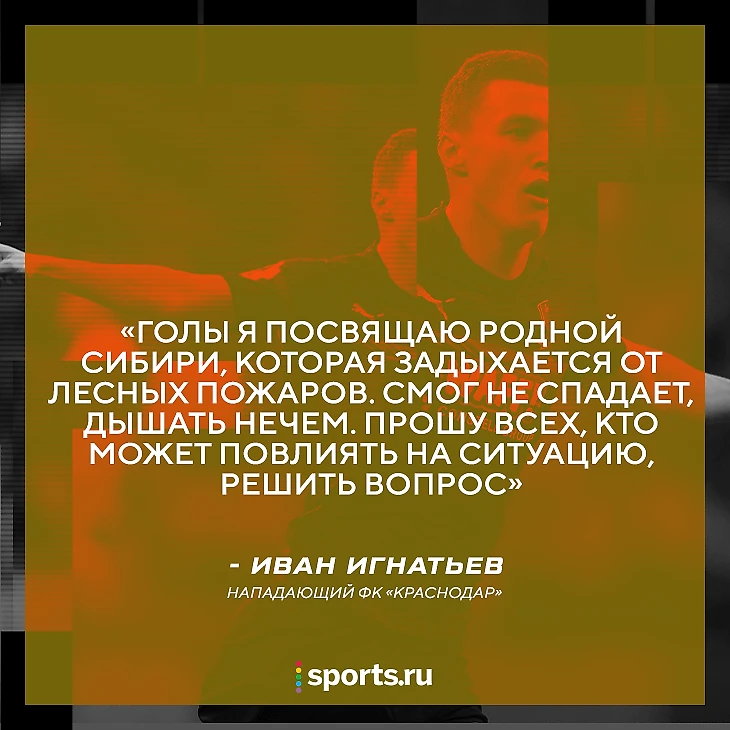 В прошлые выходные внимание к пожарам привлек нападающий «Краснодара» Иван Игнатьев.