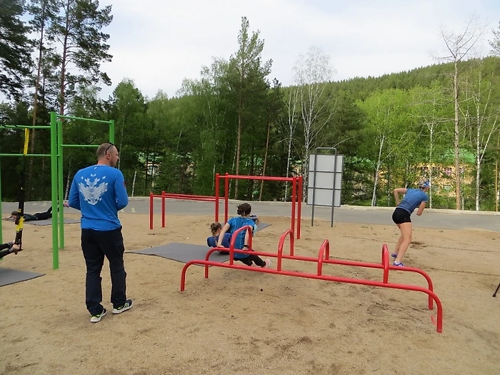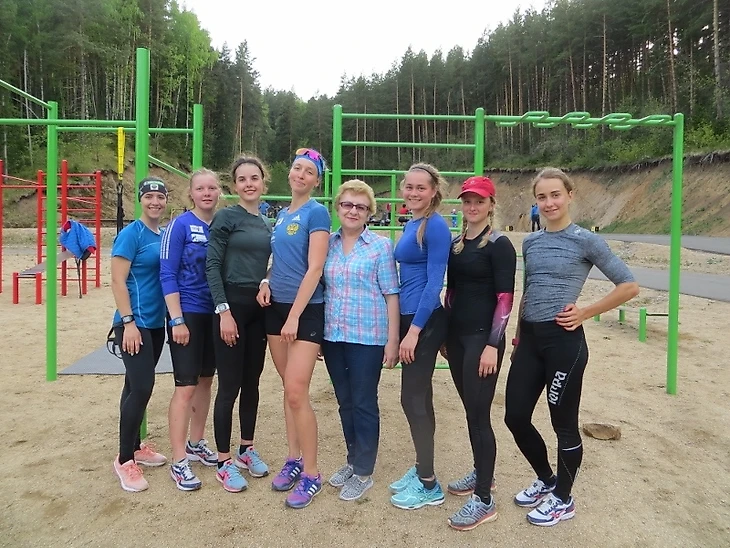 Думаю, закончится тренировка, спрошу у кого-нибудь из биатлонисток. Первой возле меня после окончания стрелковой тренировки оказалась Настя Батманова. Вот она мне как раз и рассказала о тренерах юниорской женской сборной. Я всё записала на листочек, чтобы потом не перепутать имена/отчества и кто за что отвечает. И вот пишу я, а она последним называет того неизвестного мне пока "парня": "Батманов Юрий Олегович". "Брат?- спрашиваю. "Папа",- улыбнулась Настя. Ну, ничего себе, какие у взрослых дочерей папы нынче молодые пошли! Официально Юрий Батманов числится специалистом юниорской сборной команды России. Более конкретно, в обиходе - специалист по оружию. Но при мне он принимал участие и в следующих за стрелковой тренировкой и заминочных, и некоторых силовых упражнениях. И показывал спортсменкам, как делать, то или иное упражнение, и сам потом делал их наравне со всеми.