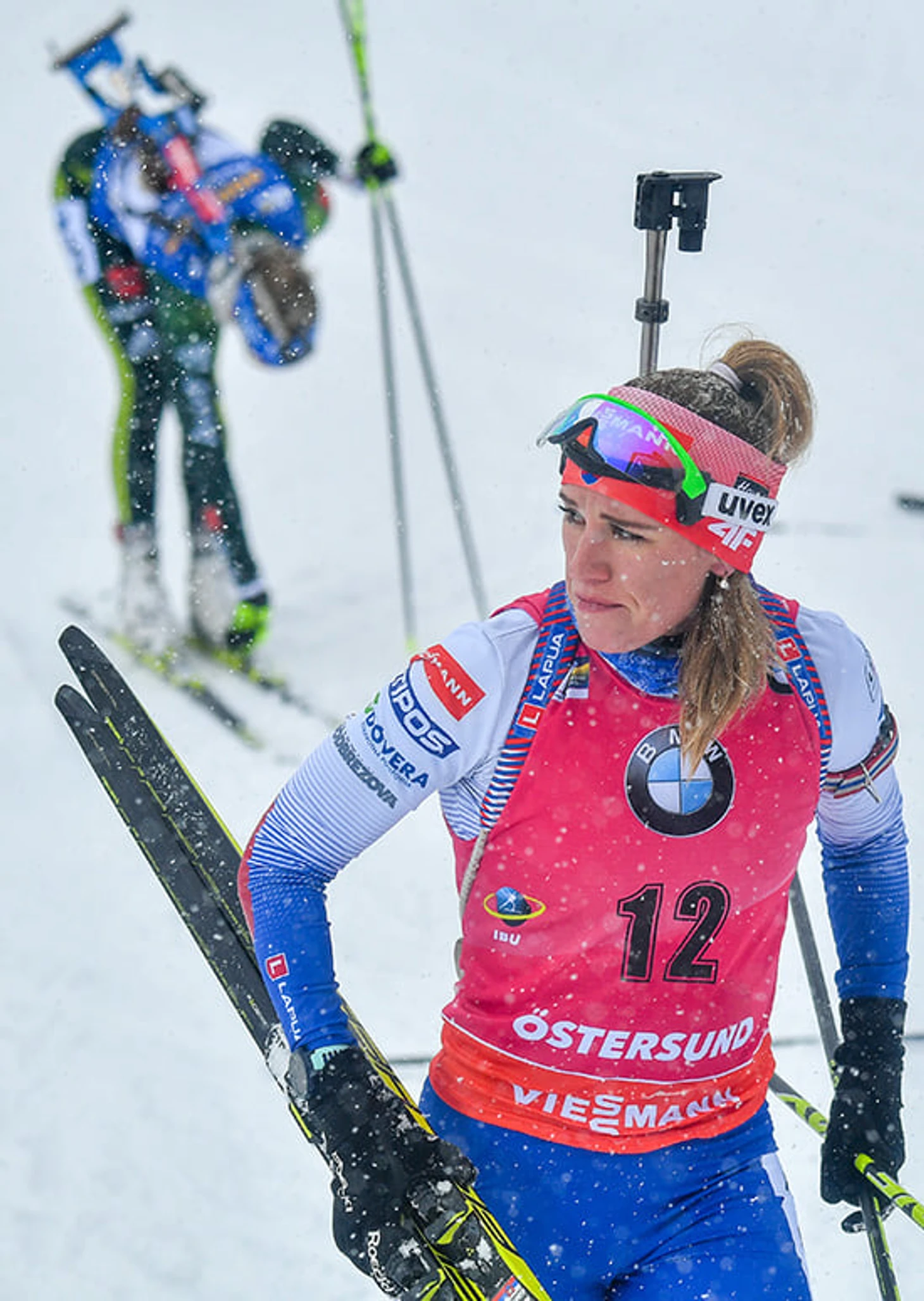 2) Винтовка. IBU размещает наклейку, после чего свободны еще три слота. Размеры зафиксированы: два по 50 см2, один – 25. Разумеется, это очень важные места, особенно для топ-биатлонистов вроде Логинова, чью стрельбу берут крупным планом в каждой гонке.