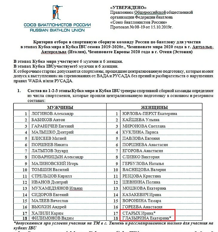 – Для меня главный вопрос – попадание Ирины Старых на Кубок мира. Хотя у нас недавно прошло Правление, на котором мы утвердили критерии отбора. Там было решение по двум спортсменкам персонально: Старых и Глазырина – их допустили к участию в гонках, но только для отбора на Кубок IBU.
