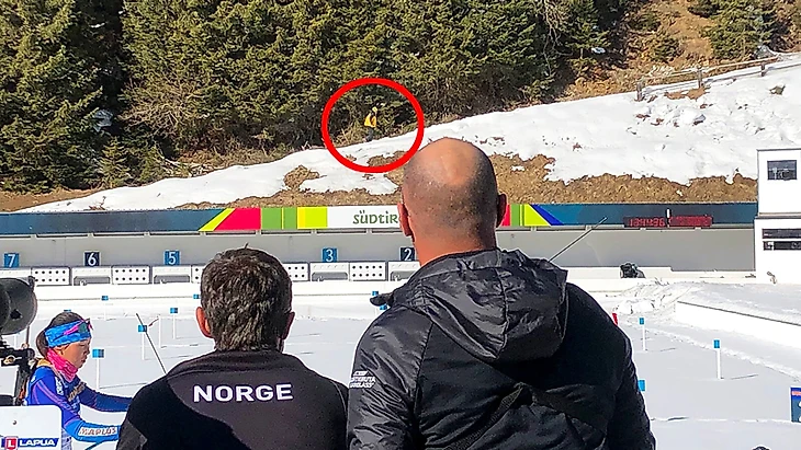 На стрельбище появился посторонний – прямо на линии огня. Биатлонисты сильно испугались