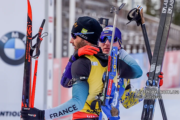 Кантен Фийон Майе и Эмильен Жаклен — красавцы, проводили кумира полностью французским подиумом. Похоже, оба после финиша не могли сдержать слёз и изо всех сил пытались это скрыть. И как же здорово, что Эмильен провёл с Мартеном вместе большую часть его финальной гонки. А Кантен ожил и поднялся на вторую ступень пьедестала с седьмого места, хотя в спринте казалось, что всё, сели батарейки :) Признаться честно, даже будучи болельщицей Кантена, я в этот день в первый (и, думаю, единственный) раз не расстроилась совершенно, когда он промазал последним выстрелом на решающей стрельбе. В такой день это должна быть победа Мартена. И к тому же — какой шикарный финишный круг они с Эмильеном и Йоханнесом Бё сообразили на троих!