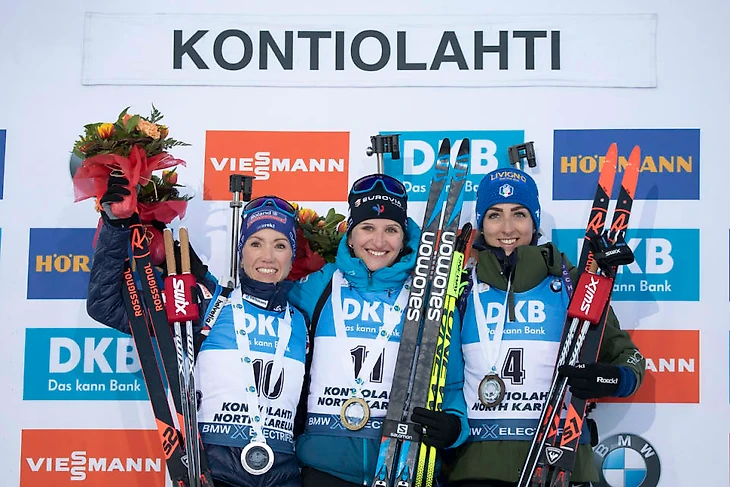Француженка Жюлия Симон закрыла все мишени на последней стрельбе стоя и помчалась навстречу своей первой победе на Кубке мира с французским флагом в руках. Она преодолела дистанцию за 30:43.5. Симон, допустившая два промаха, финишировала на 17,3 секунды раньше Селины Гаспарин из команды Швейцарии, которая ошиблась четыре раза и заняла второе место – ее лучший результат в сезоне. Итальянка Лиза Виттоцци, также с четырьмя промахами, заняла третье место, отстав на 20,9 секунды.