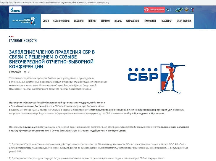 В биатлоне по-прежнему нескучно: накануне на сайте СБР вышел большой манифест членов Правления, которые разгромили президента Владимира Драчева.