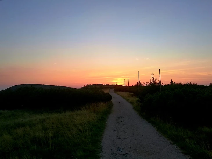 Закат невероятный. Ночью, как это обычно и бывает в Крконоше, погода меняется; можно только мечтать о приятном восходе. 24 марта 1913 года двое друзей замерзли насмерть во время лыжной гонки, когда вышли на старт в коротких рукавах и не финишировали. Мы ночуем рядом с их памятником и осознаем, насколько жестокими могут быть горы.