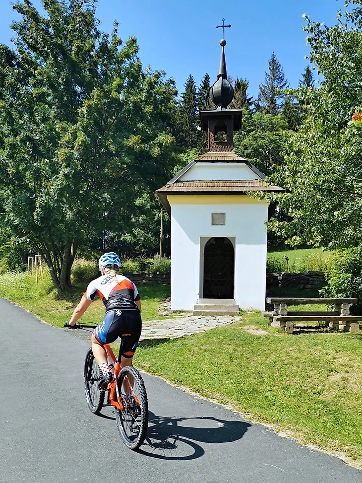 “На то, чтобы спланировать новое жилое пространство, требуется больше сил, чем на тренировки, так что я ненадолго остановилась купить мороженое, потому что я его заслужила!” Проект кухни и ремонт пора отложить в сторону, настало время для очередной тренировки. “Мы с папой поехали на короткую прогулку на горных велосипедах и заехали в одно из моих любимых мест: Базилику святой Анны над Врхлаби, где (по моему мнению!) есть магия. Оттуда открывается симпатичный вид на город, и я обычно восстанавливаю потраченные силы».