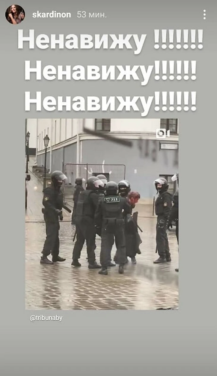 Зато вот такими сторис отреагировала в Инстаграме партнер Дарьи по биатлонной сборной Белоруссии Надежда Скардино.
