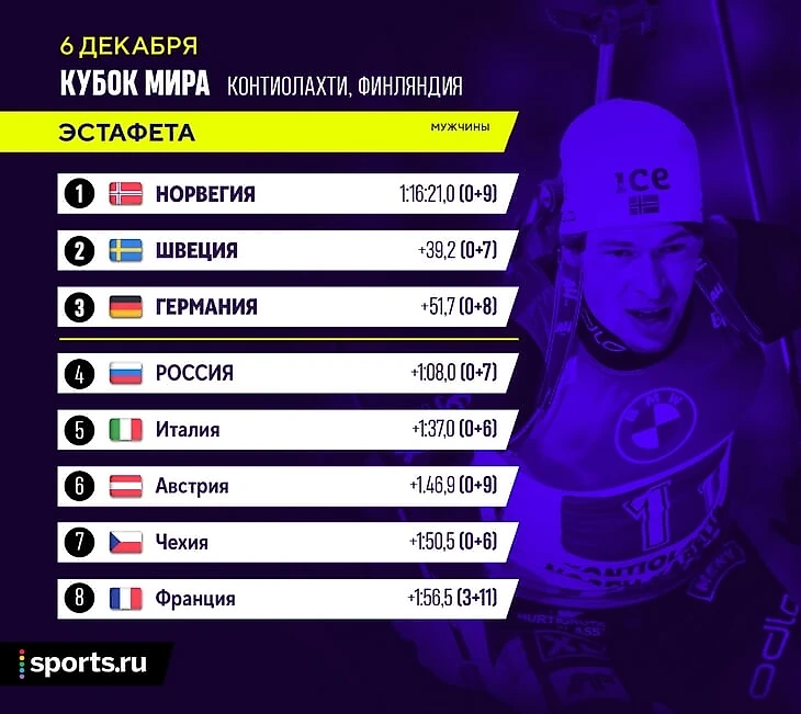 Относительно ЭСТАФЕТНОГО БИАТЛОНА всё достаточно просто. На сегодня есть 4 страны, которые являются топами, это Норвегия-Франция-Швеция-Германия.