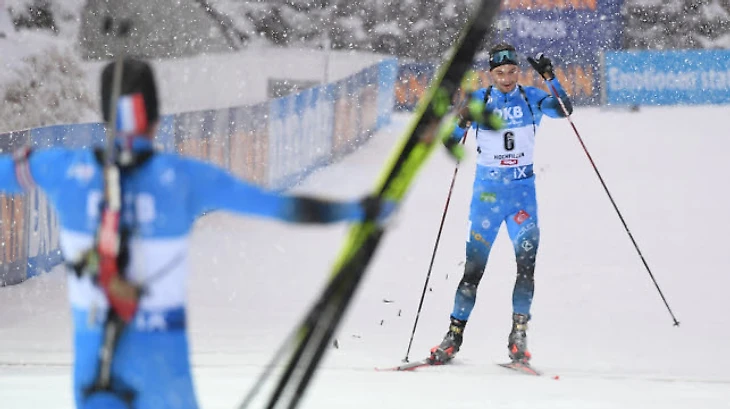Блестящая эстафета французской команды. Антонен пробежал великолепный этап. Эмильен реализовал свой лыжный потенциал. Кантену удалось выпустить пар. И только Фабьен ничего не понял. Но он ещё молод.