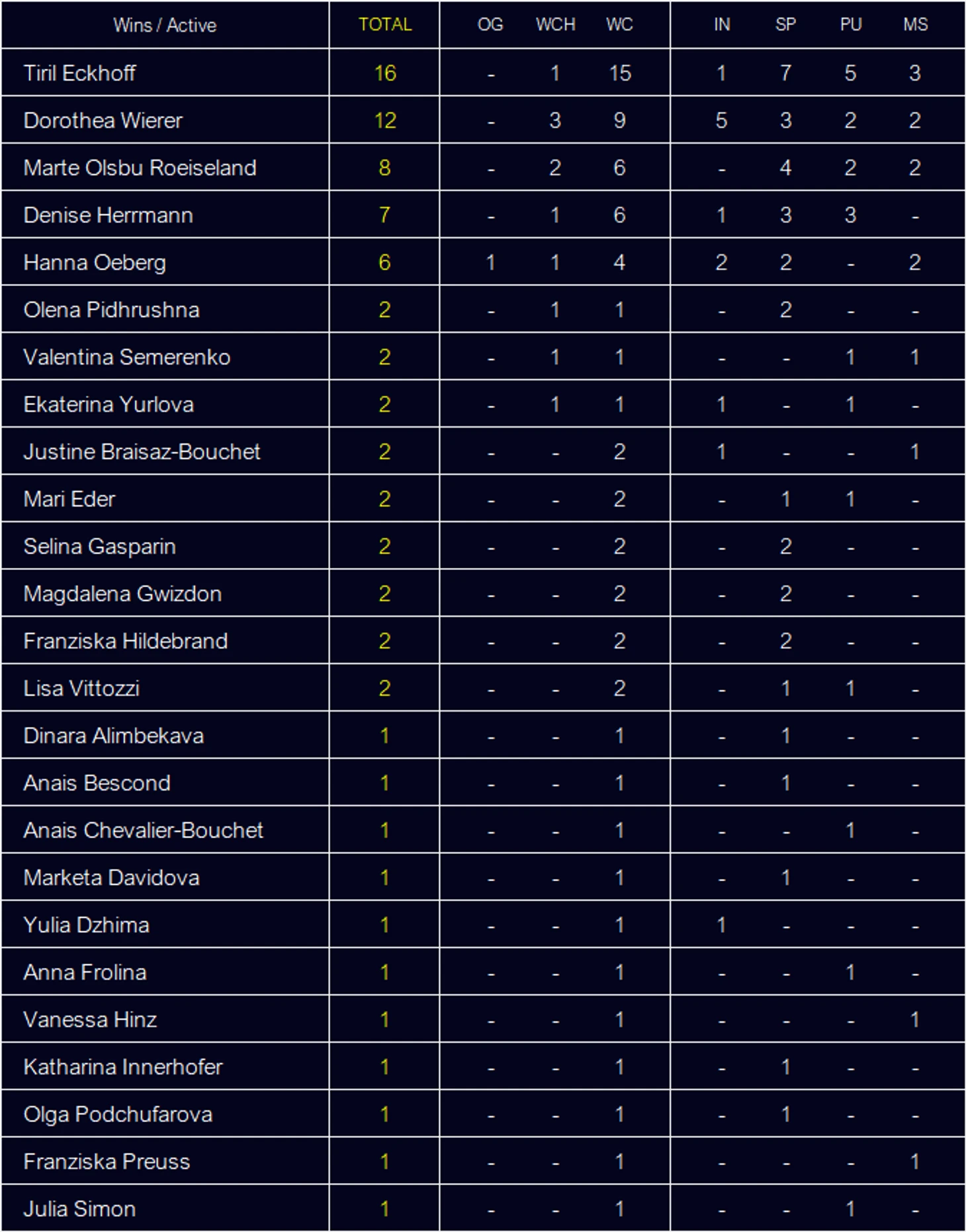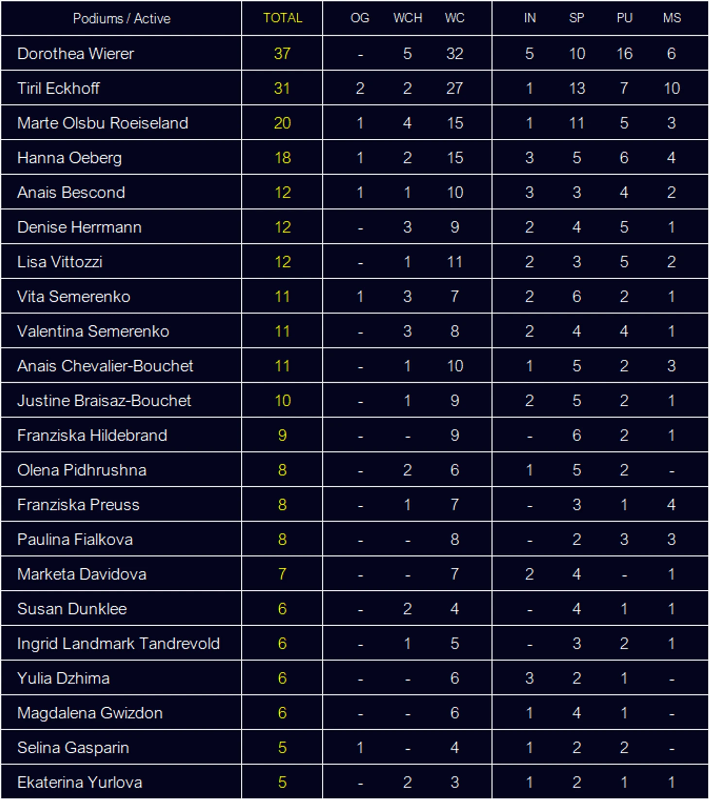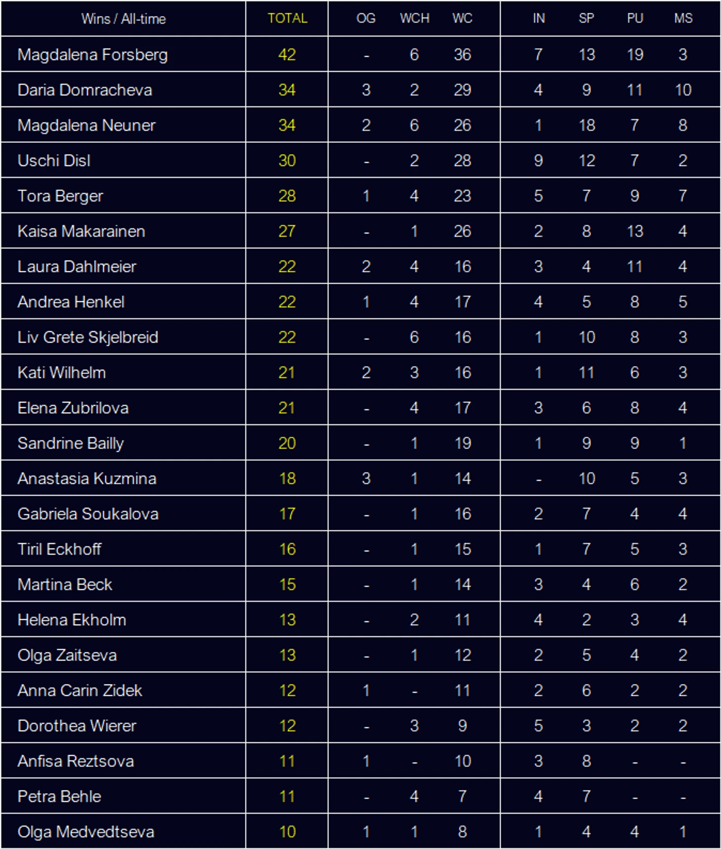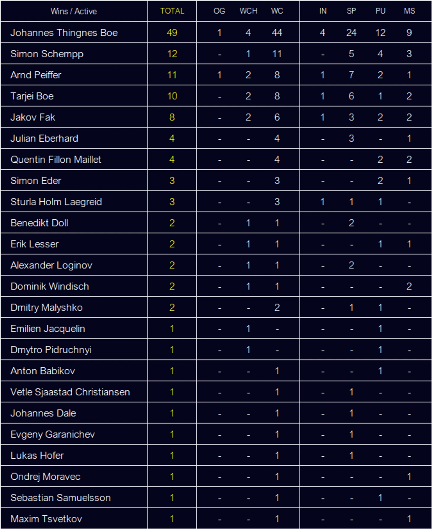 Очередной апдейт списка самых успешных биатлонистов — исторических и действующих.
