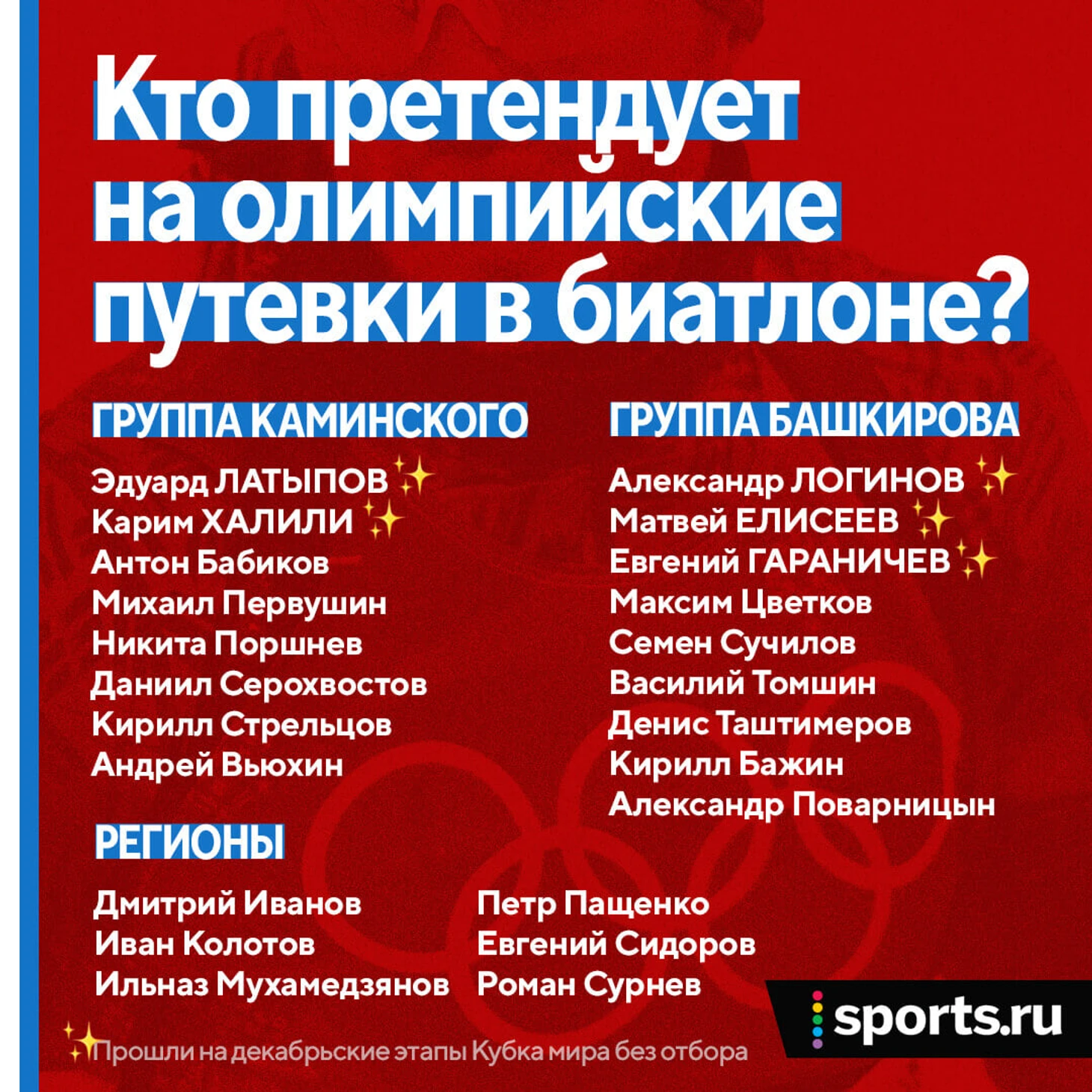 1. Логинов, Латыпов, Елисеев и Гараничев попали в команду как люди из топ-30 Кубка мира по последнему сезону. Весной босс СБР Виктор Майгуров говорил о привилегии для топ-25 – и если бы все так и сохранили, в отборе пришлось участвовать Гараничеву. Теперь фартовый ветеран избежал стресса.
