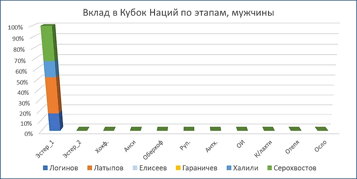 Ну, и на закуску, по аналогии, опять же, с девушками, про Кубок Наций. После первого этапа в двойке лучших - Серохвостов! Сюрприз. Большой сюрприз. Блин - суммарное текущее положение дел.