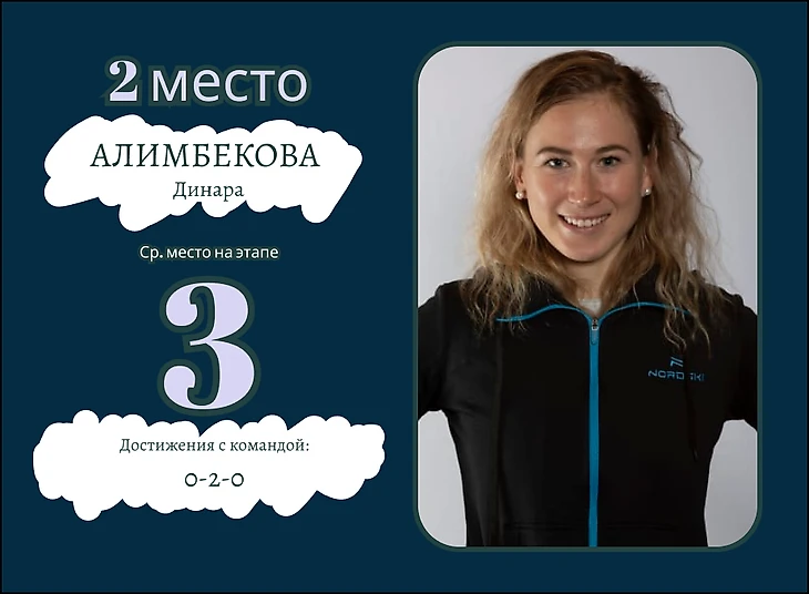 В начале сезона Динара выступала на первом этапе, но после не совсем удачных гонок ее переставили на второй. Это в итоге оказалось удачным решением. Алимбекова подтаскивала белорусок поближе к лидерам, давая тем самым возможность Соле и Елене Кручинкиной побороться за тройку сильнейших. Дважды это вылилось в серебряные медали.