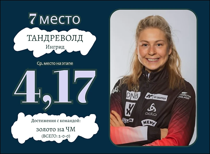 Несмотря на довольно высокую строчку в рейтинге, у Ингрид хватало проблем в прошлом сезоне. Частенько своей стрельбой Тандреволд заставляла болельщиков сборной Норвегии хвататься за сердце. К счастью, чаще всего лишь пугала, только раз зашла на штрафной круг.
