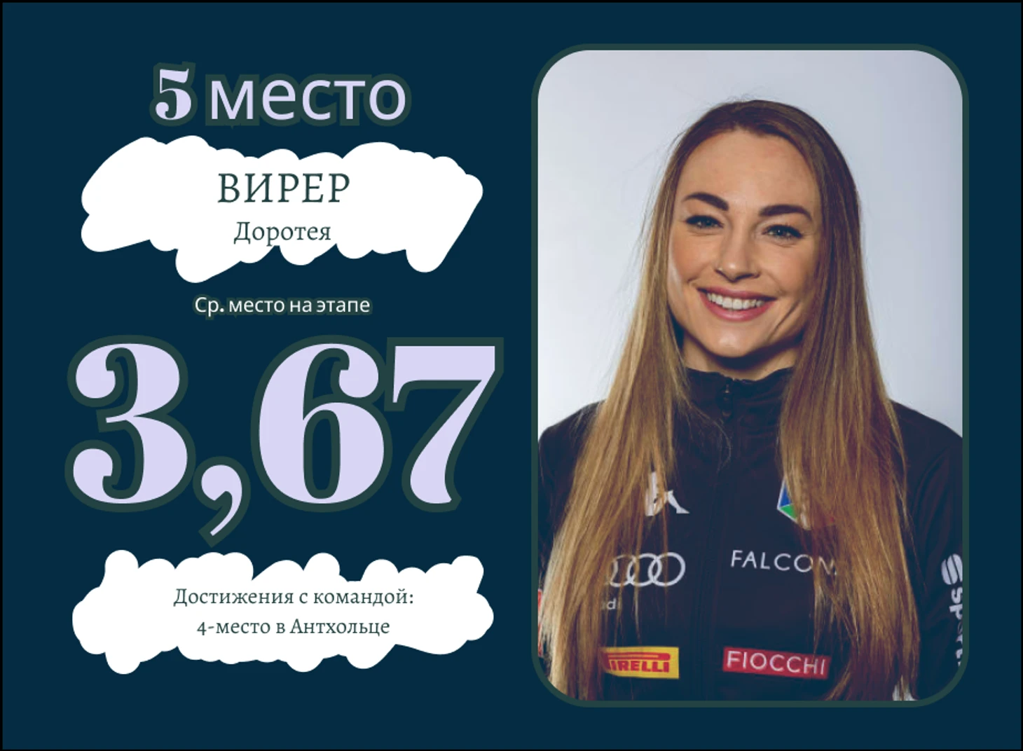 Худшие эстафеты в исполнении Доры пришлись на январь, что несколько странно, состояние итальянки тогда было не самым худшим. Обиднее всего за эстафету в Антхольце, в ней сборная Италии была максимально близка к медалям.