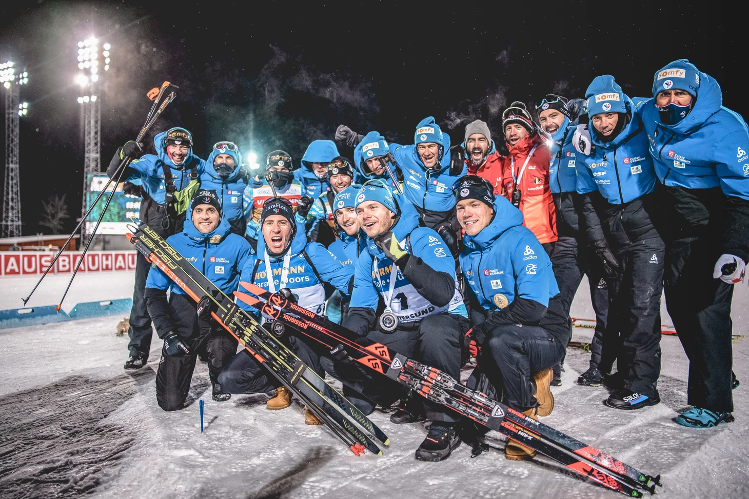 Мушкетёры ответили эстафетным серебром, двойным подиумом в спринте и бронзой Эмильена в пасьюте, но так нигде и не смогли поймать победу, хотя золото несколько раз казалось довольно близким и возможным. Тем не менее, этап можно считать успешным. В целом, команда и на первом этапе выступила хорошо, не досчитались только КФМ. Но ко второму этапу Кантен вернулся: