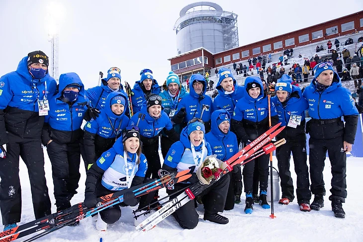 А вот на втором этапе женская сборная, можно сказать, затмила парней Виттоза. Сначала всё та же Анаис забрала себе красную майку после шестого места во втором спринте, а в пасьюте они вместе со старшей Анаис подарили команде двойной подиум. И, наконец, именно от них пришла первая французская победа в сезоне — девушки в гроссмейстерском стиле выиграли эстафету с почти минутным отрывом от второго места: