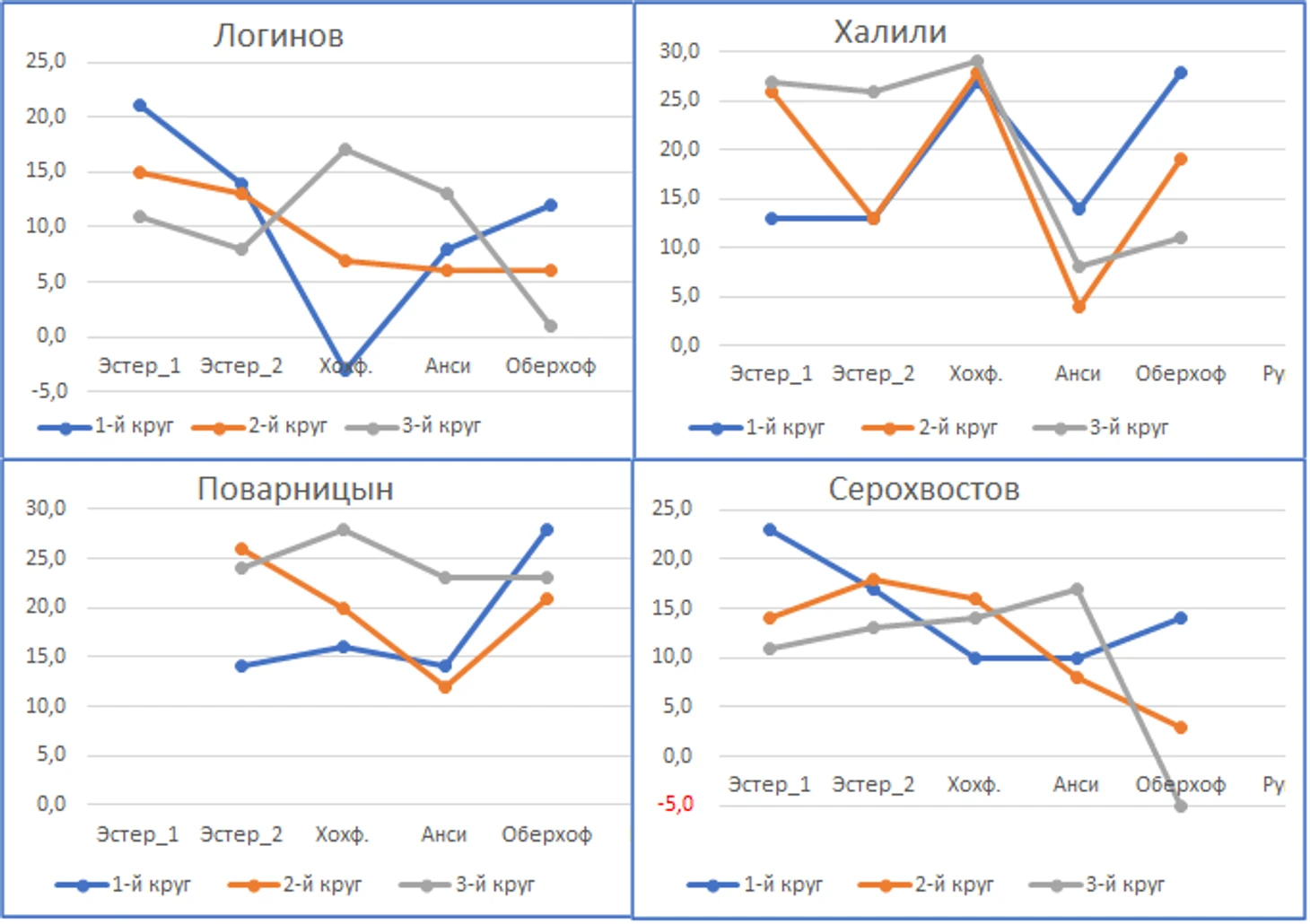 Динамику по кругам даю только по четверым. Поварницын после Анси заметно сдал на первых двух кругах. А вот третий у него достаточно стабилен по сезону. Похожая картина и у Карима. А вот Логинов и Серохвостов ускорились за счёт третьего круга. Данила улучшил и второй.