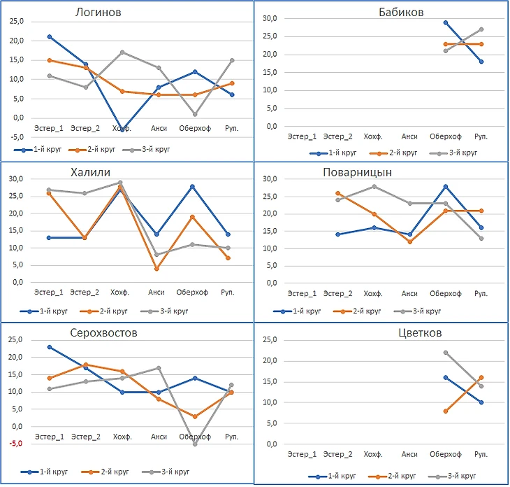 Дальше можно увидеть, как разложились парни в этой конкретной гонке. По ходу гонки стабильно падала скорость у Логинова и Бабикова. Серохвостов прошёл ровно. Поварницын даже умудрился заметно ускориться на третьем круге. У Халили и Цветкова - приемлемо, я думаю.