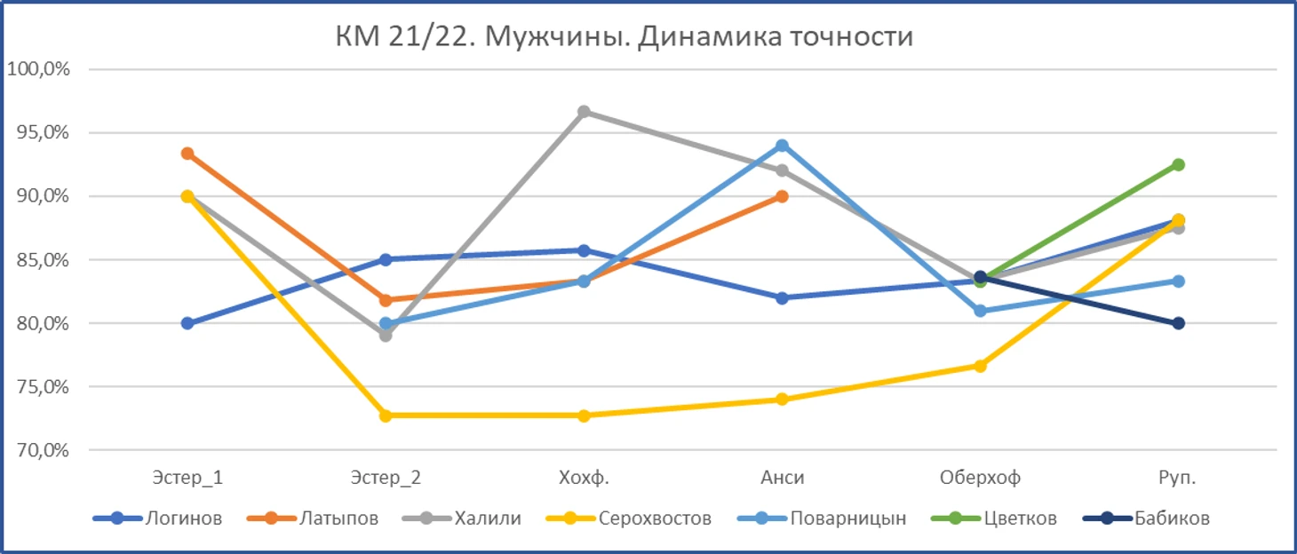После Оберхофа закономерный подъём точности. У всех, кроме Бабикова. Меня больше всех в этом плане впечатлил Серохвостов. Может точно стрелять, может. С ним можно и нужно работать.